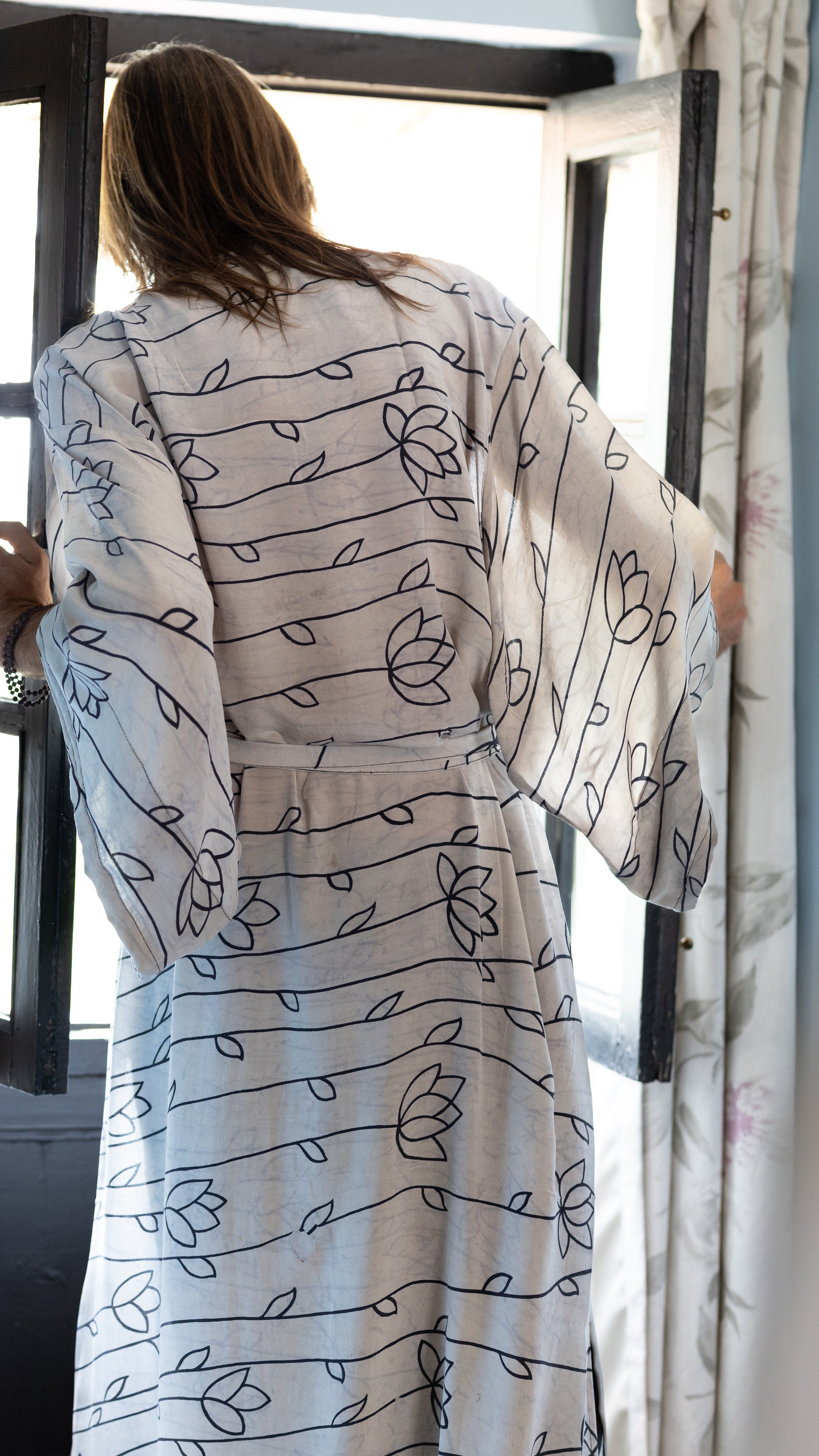 Our signature silk robes have been optimized for the perfect silhouette, featuring wide sleeves, side pockets, and side slits. They are designed to be versatile and gender neutral, wearable by anybody and ready for anything.